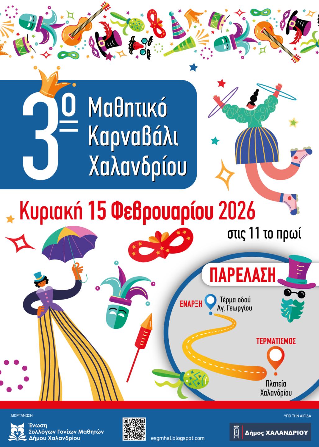 - 3ο Μαθητικό Καρναβάλι Χαλανδρίου | Κυριακή 15 Φεβρουαρίου, 11:00 π.μ.
