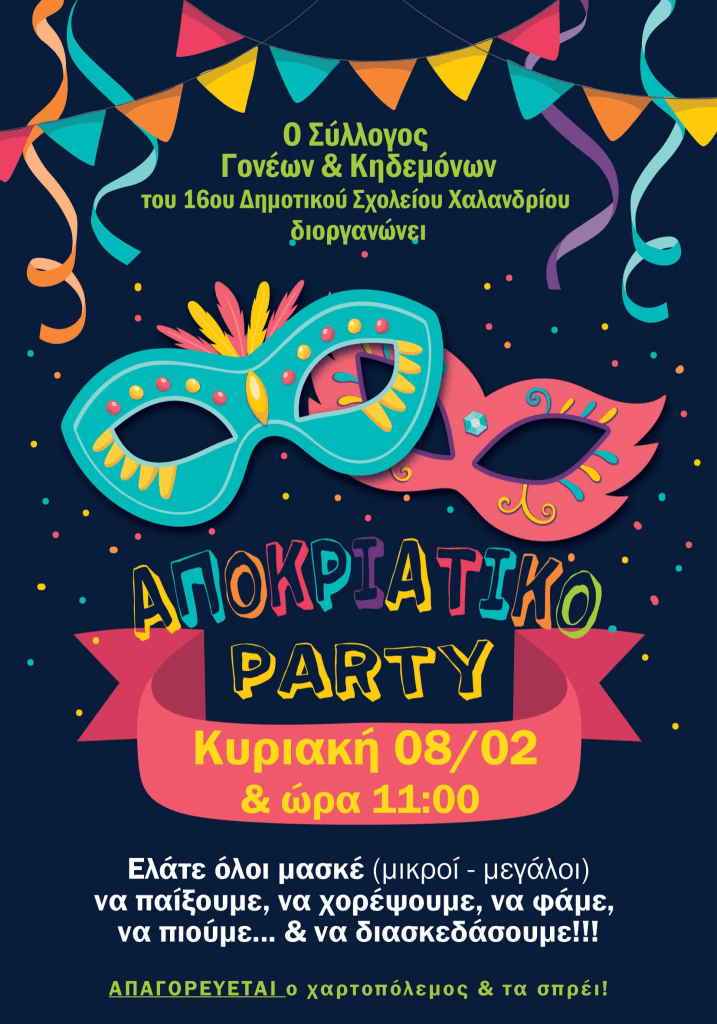 - Αποκριάτικο Πάρτυ Σχολείου | Παρασκευή 20 Φεβρουαρίου, πρωί