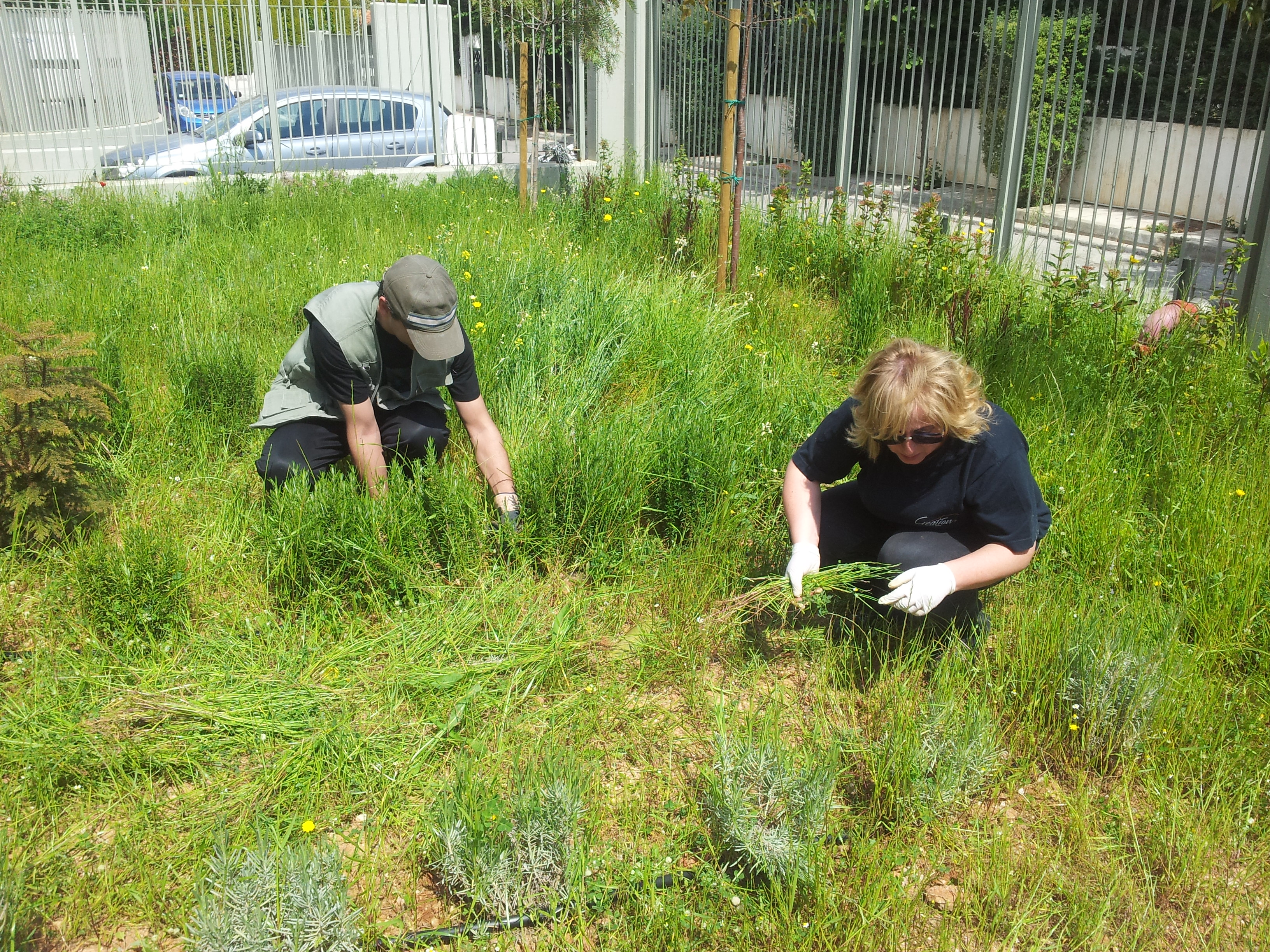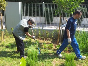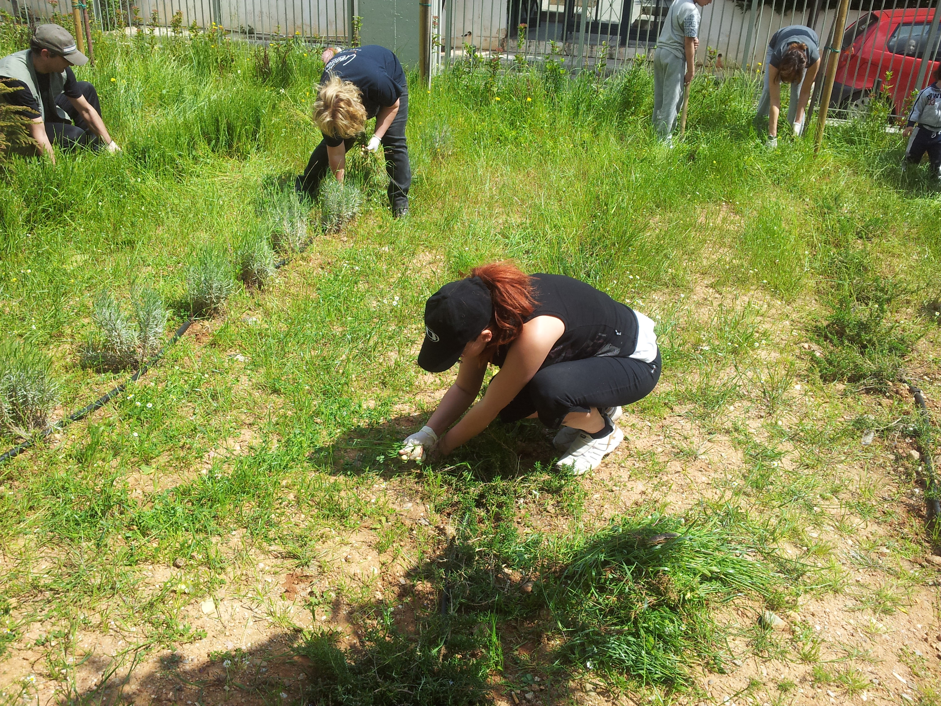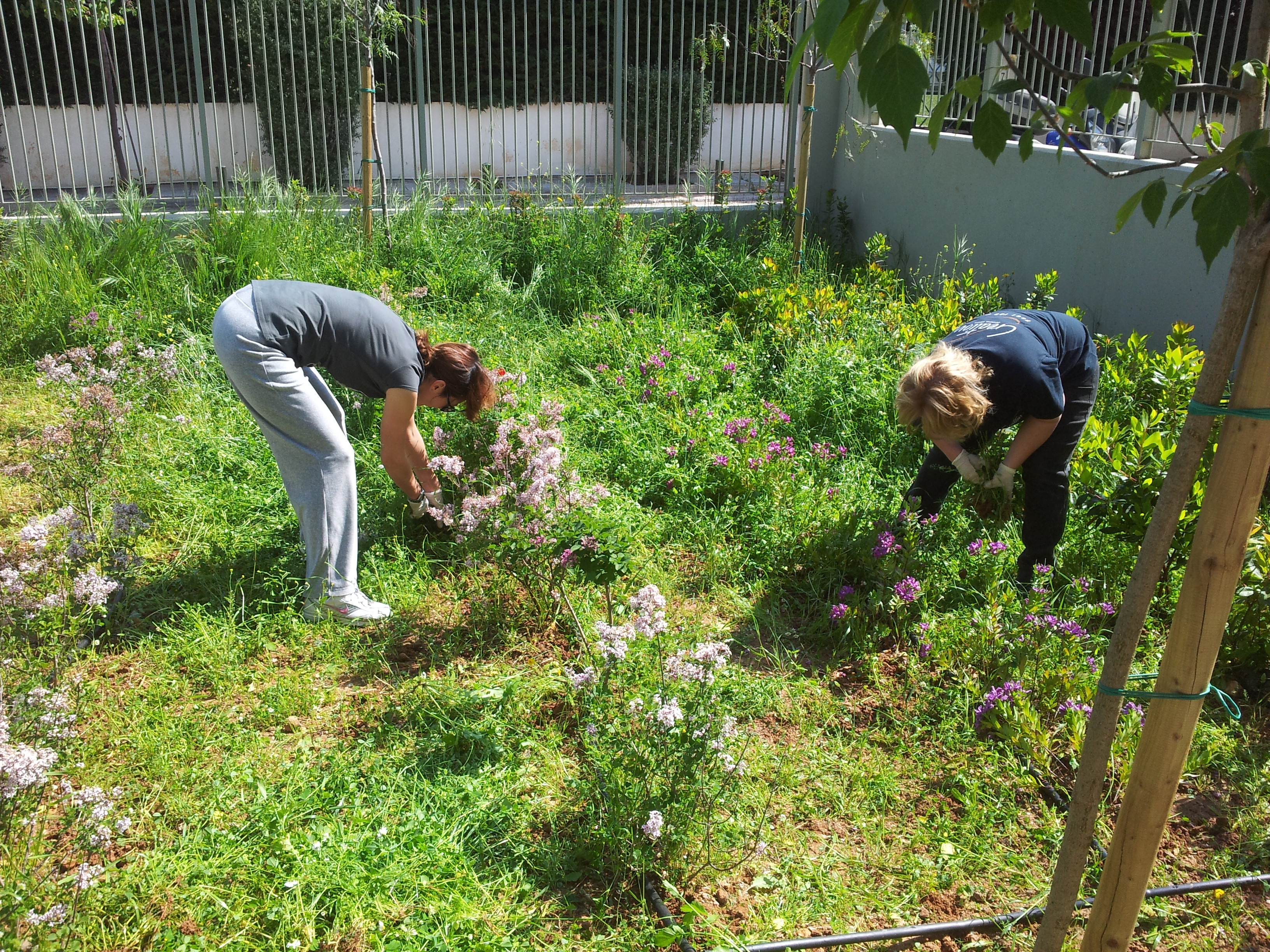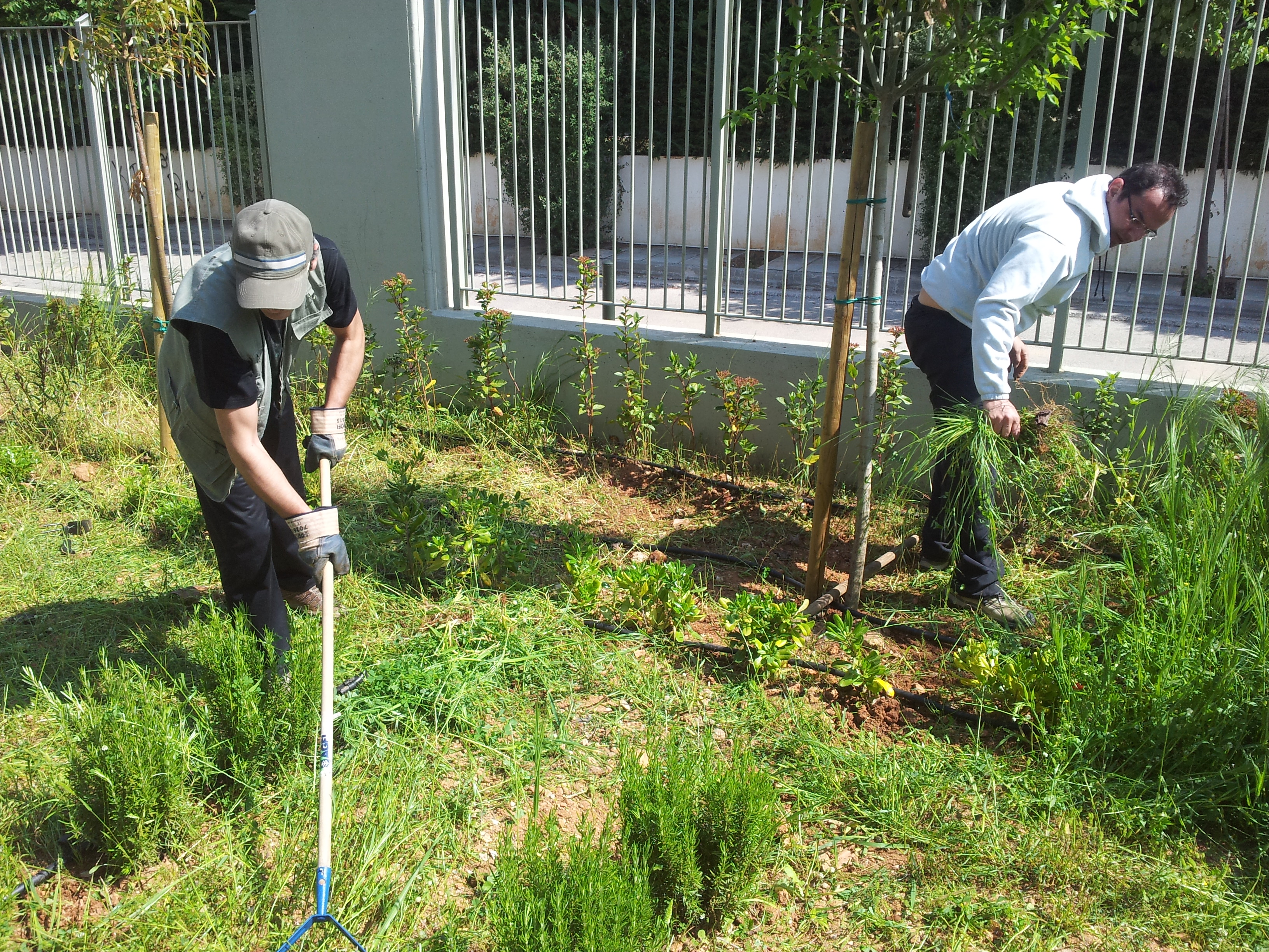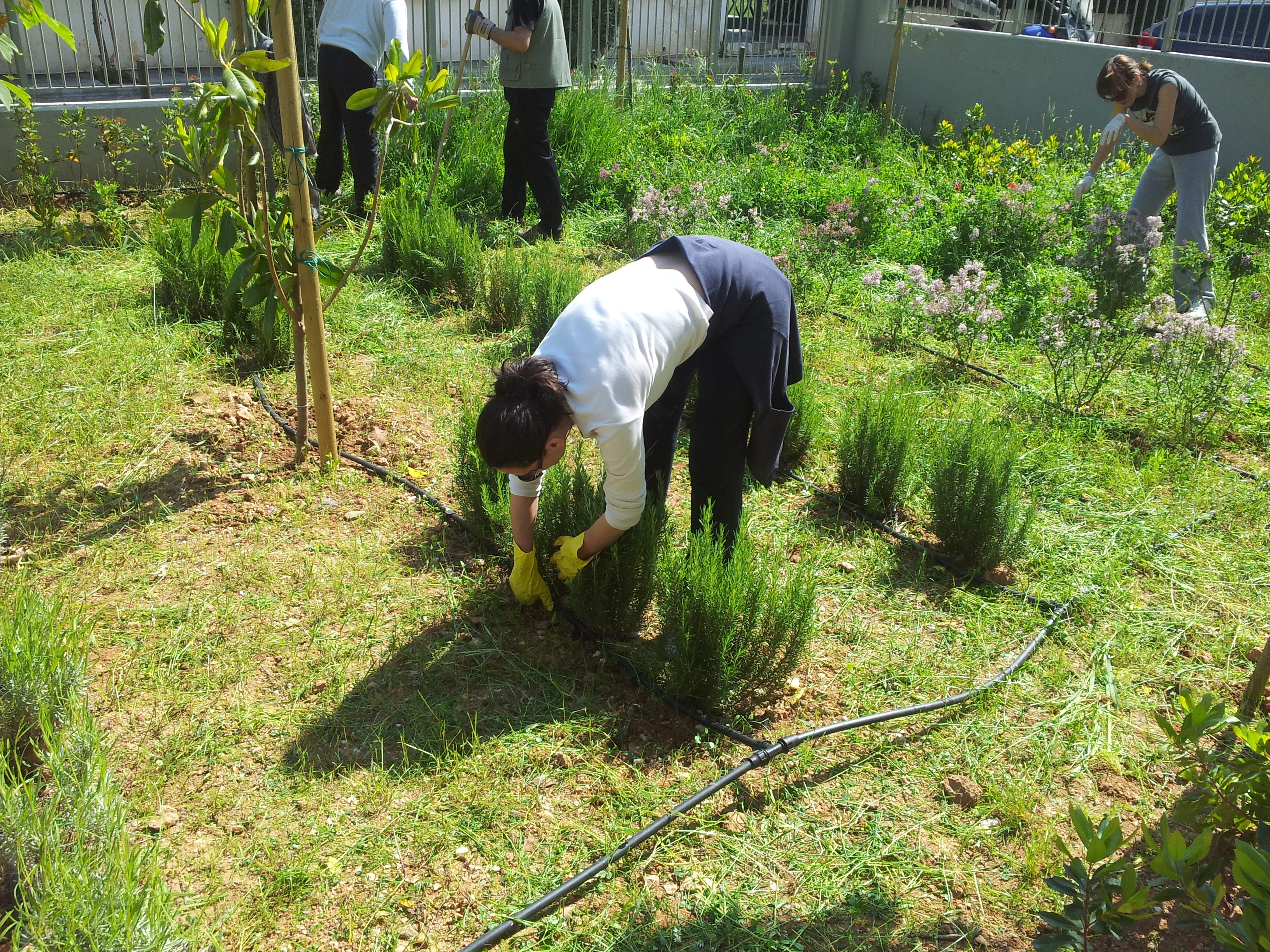 μαζευτήκαμε στην αυλή του Σχολείου επί της οδού Παπανικολάου με σκοπό να καθαρίσουμε τα αγριόχορτα και κάθε είδους ζιζάνια που έχουν πνίξει τα φυτά του κήπου μας.