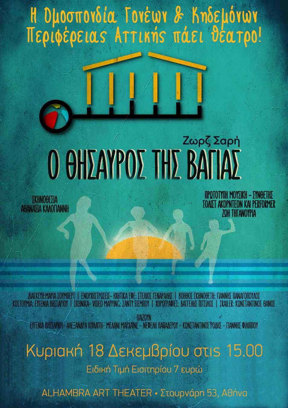 Το Διοικητικό Συμβούλιο της Ομοσπονδίας Γονέων & Κηδεμόνων Περιφέρειας Αττικής αποφάσισε την πολιτιστική δράση με οργανωμένη θεατρική παράσταση για τους γονείς και τα παιδιά της Αττικής την Κυριακή 18 ΔΕΚΕΜΒΡΙΟΥ στις 15.00 στο ALHAMBRA ART THEATER στην παράσταση της Ζωρζ Σαρή