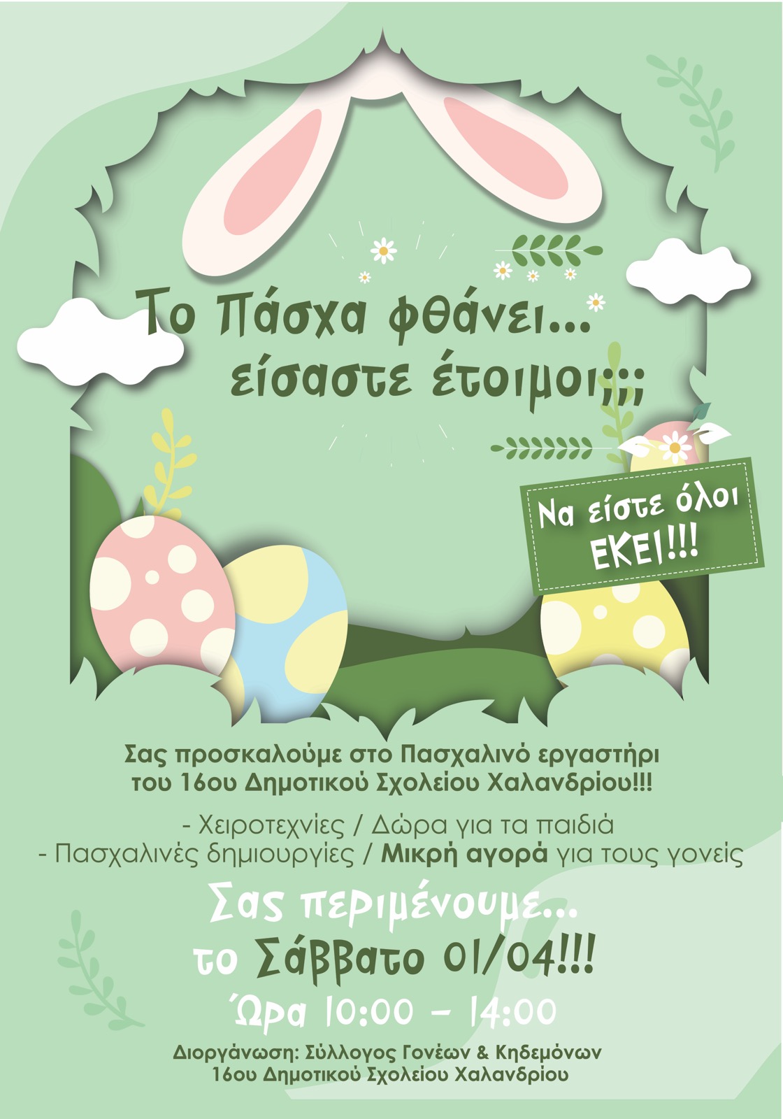 Παράλληλα θα υπάρχει και μικρή πασχαλινή αγορά, με τις δημιουργίες μαθητών και γονιών.