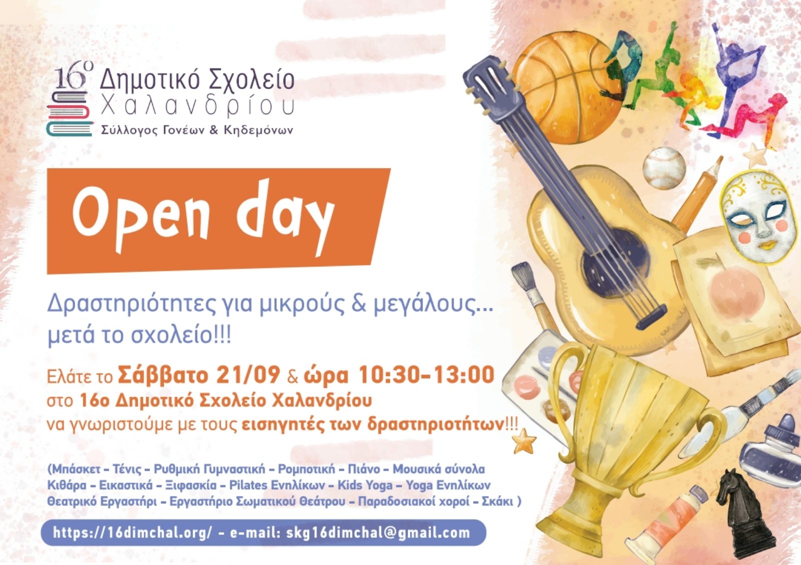 ελάτε αυτό το Σάββατο 21 Σεπτεμβρίου, 10:30 – 13:00, στο σχολείο για την Ημέρα Γνωριμίας των Δραστηριοτήτων.