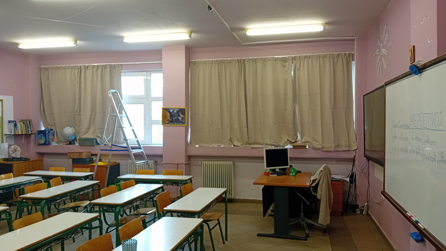 Επειδή το κόστος αντικατάστασης όλων των κουρτινών όλων των τάξεων είναι πολύ μεγάλο, ξεκινάμε από τις τάξεις που διαθέτουν διαδραστικό πίνακα.